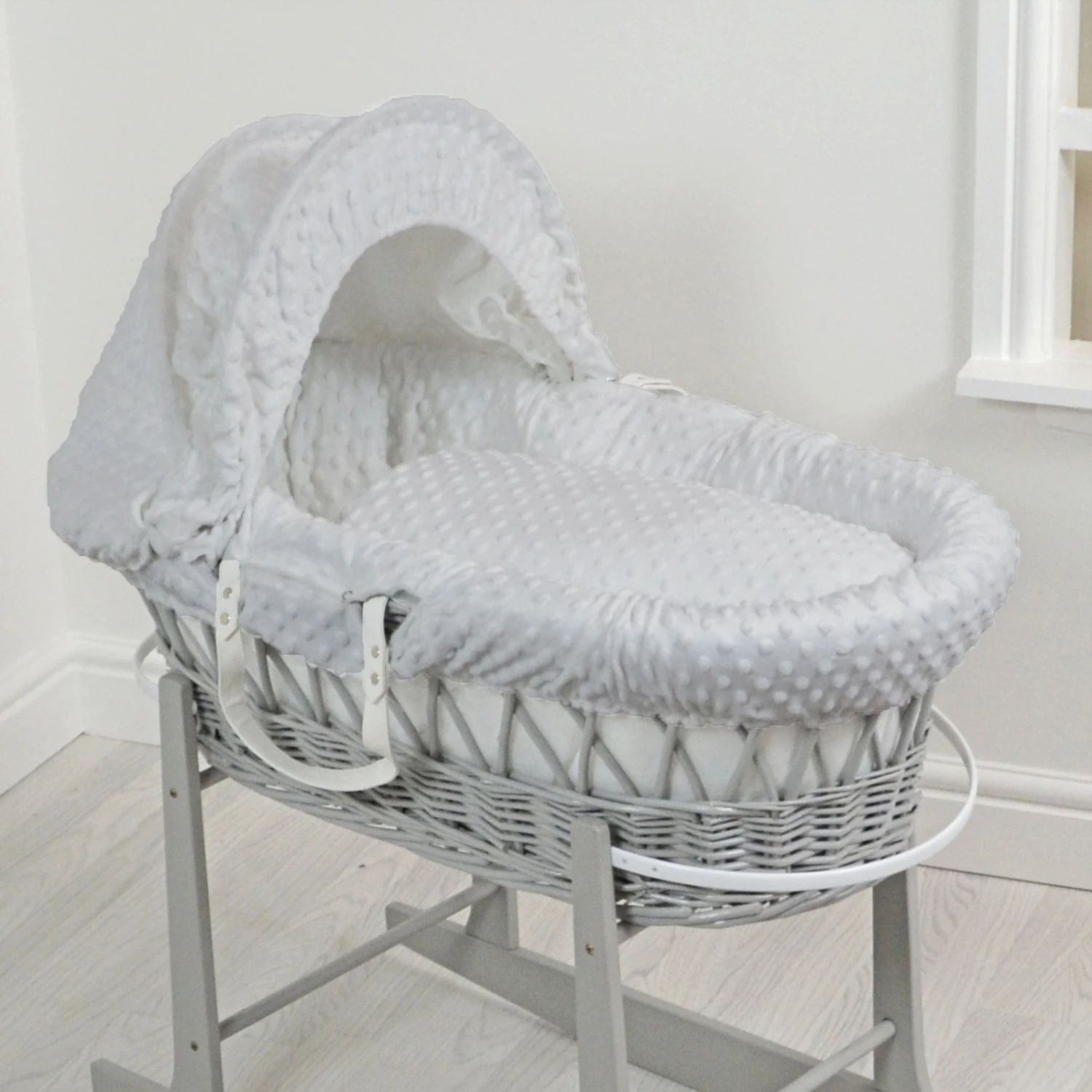 4Baby Luxury Padded Grey Wicker Baby Moses Basket – Grey Dimple