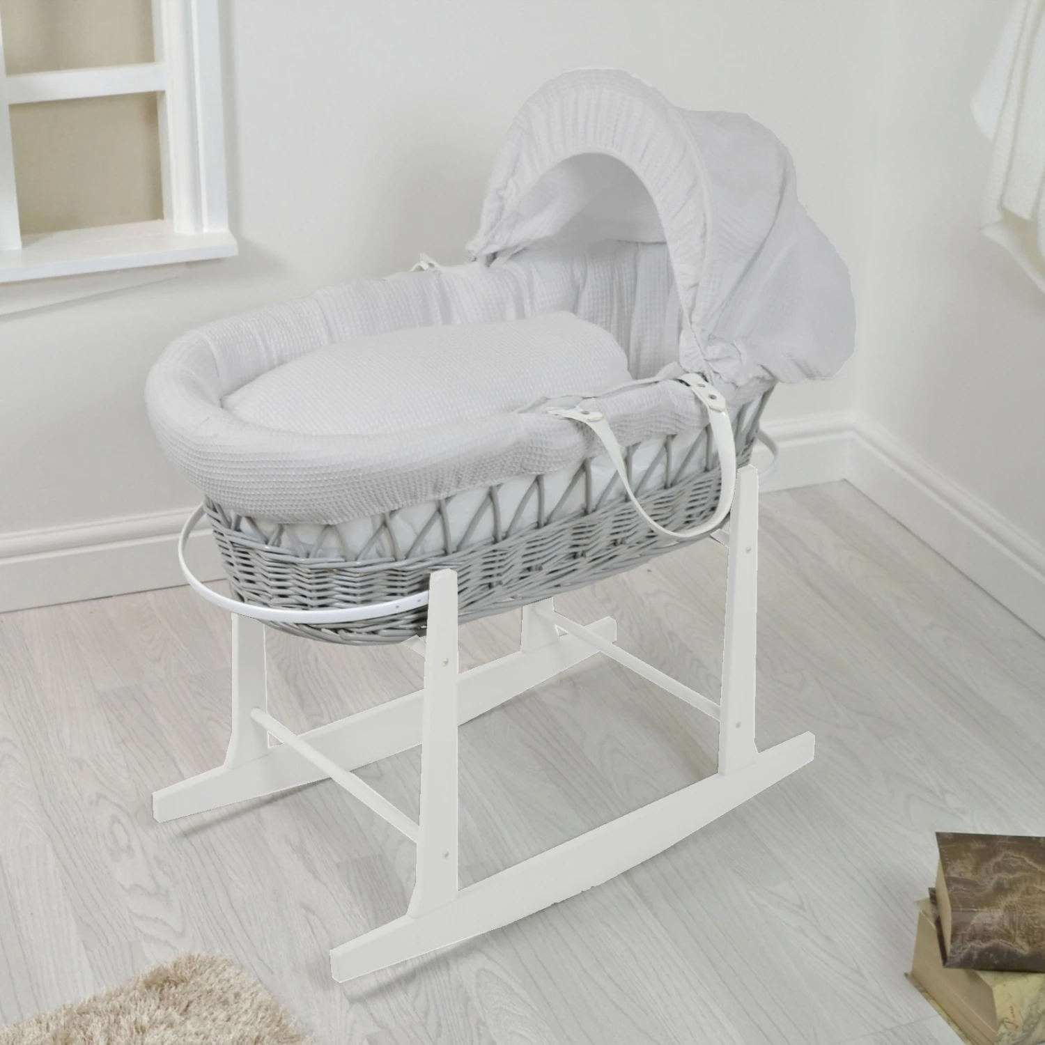 4Baby Padded Grey Wicker Moses Basket & Rocking Stand – Grey Waffle