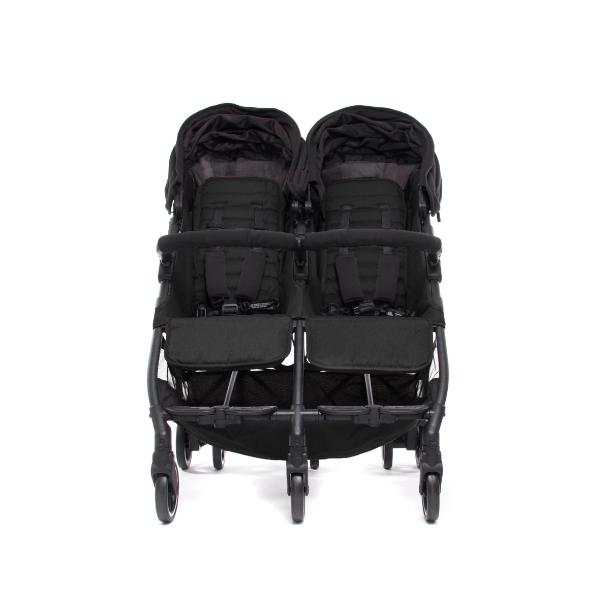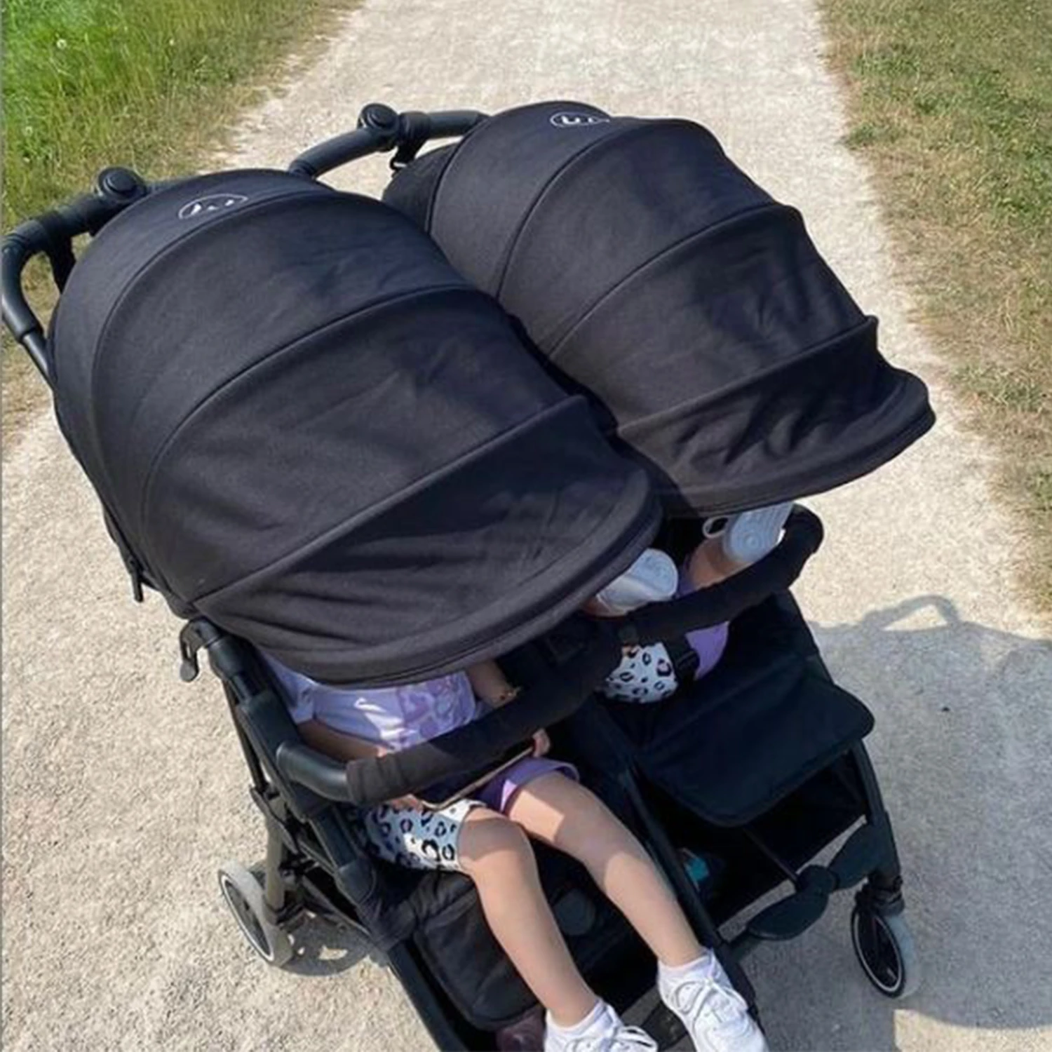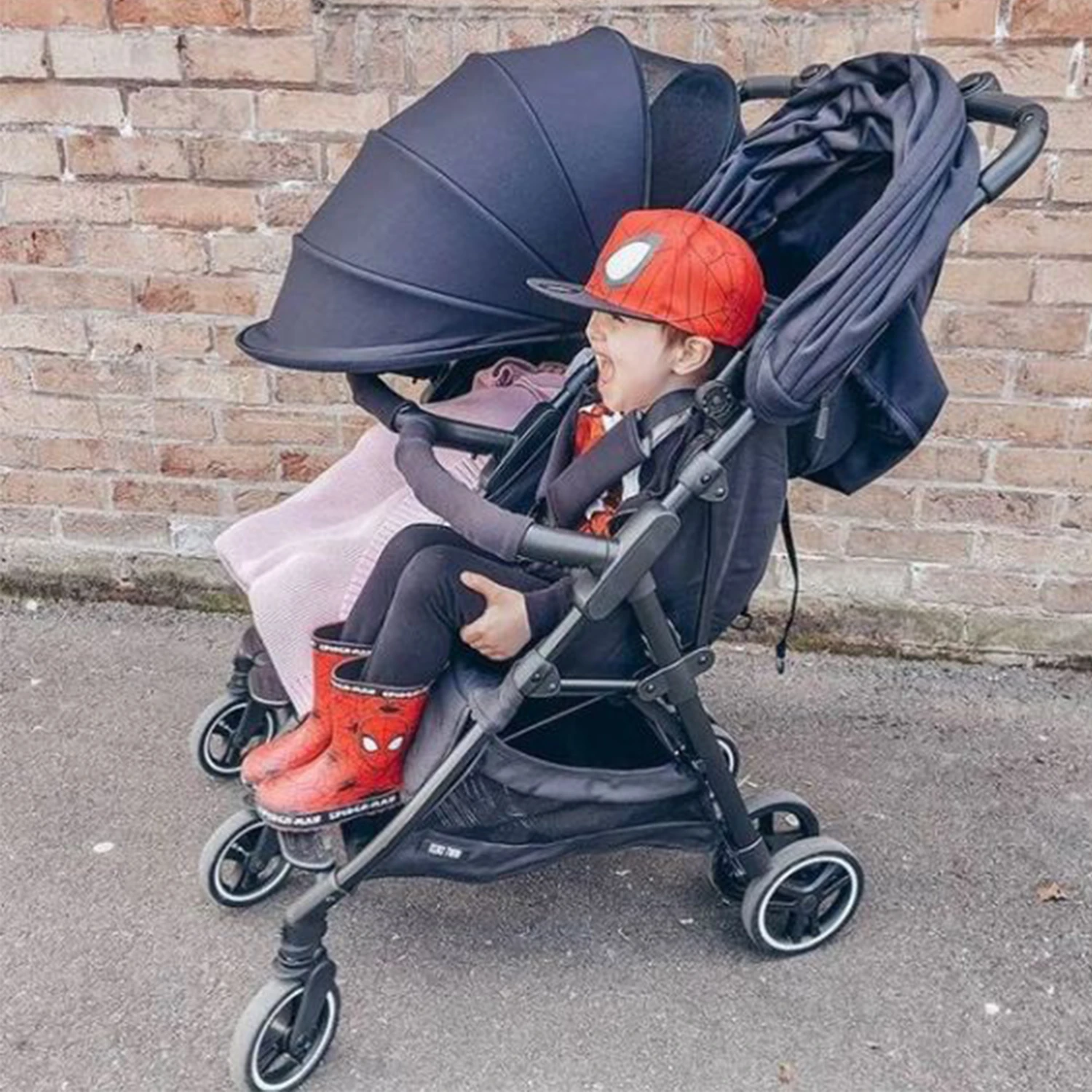 Baby Monsters Kuki Lightweight (9.8kg) Twin Double Pushchair & Raincover with Transport Bag – Black