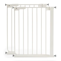 This Super Slim Fit safety Gate Fits narrow openings of 60.5-66.5cm. Large walk through area. Triple locking one handed opening system. Made in Denmark from the best quality Italian Steel. PVC Free, No harmful substances at all, even when you little one decides to sooth their gums on the cool gate. Everything is in the box you need to fit this gate (no additional tools required). Suitable for use: 0-24 months. Fully complies with the latest safety regulations EN1930:2011.