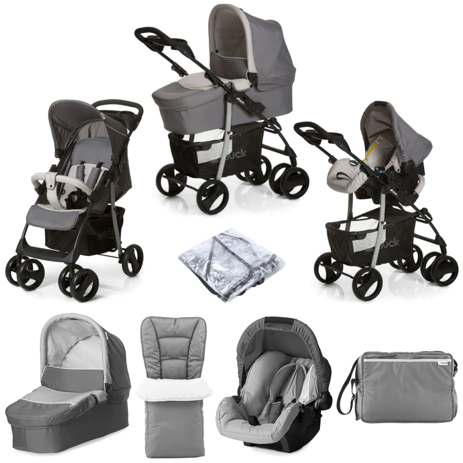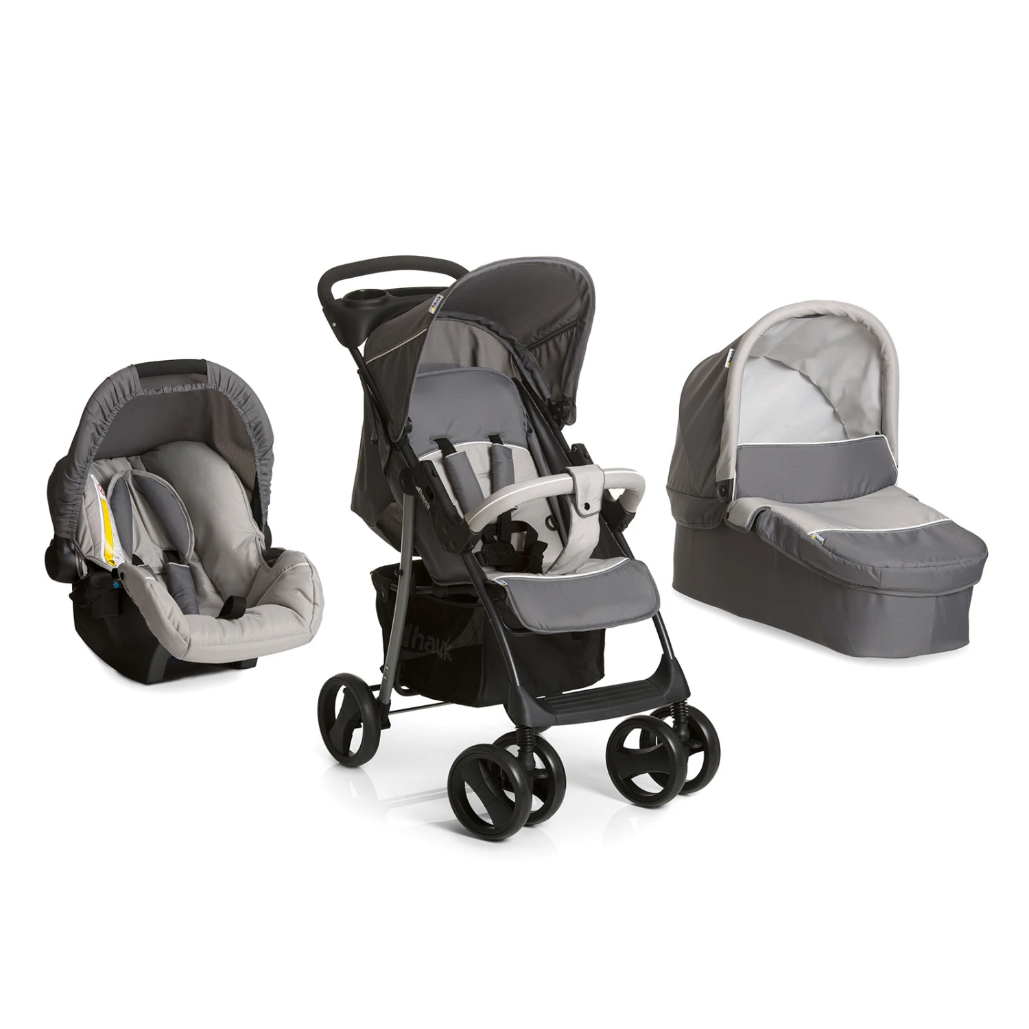 Hauck Shopper SLX Trio Set Travel System with Footmuff, Changing Bag & Raincover- Stone / Grey