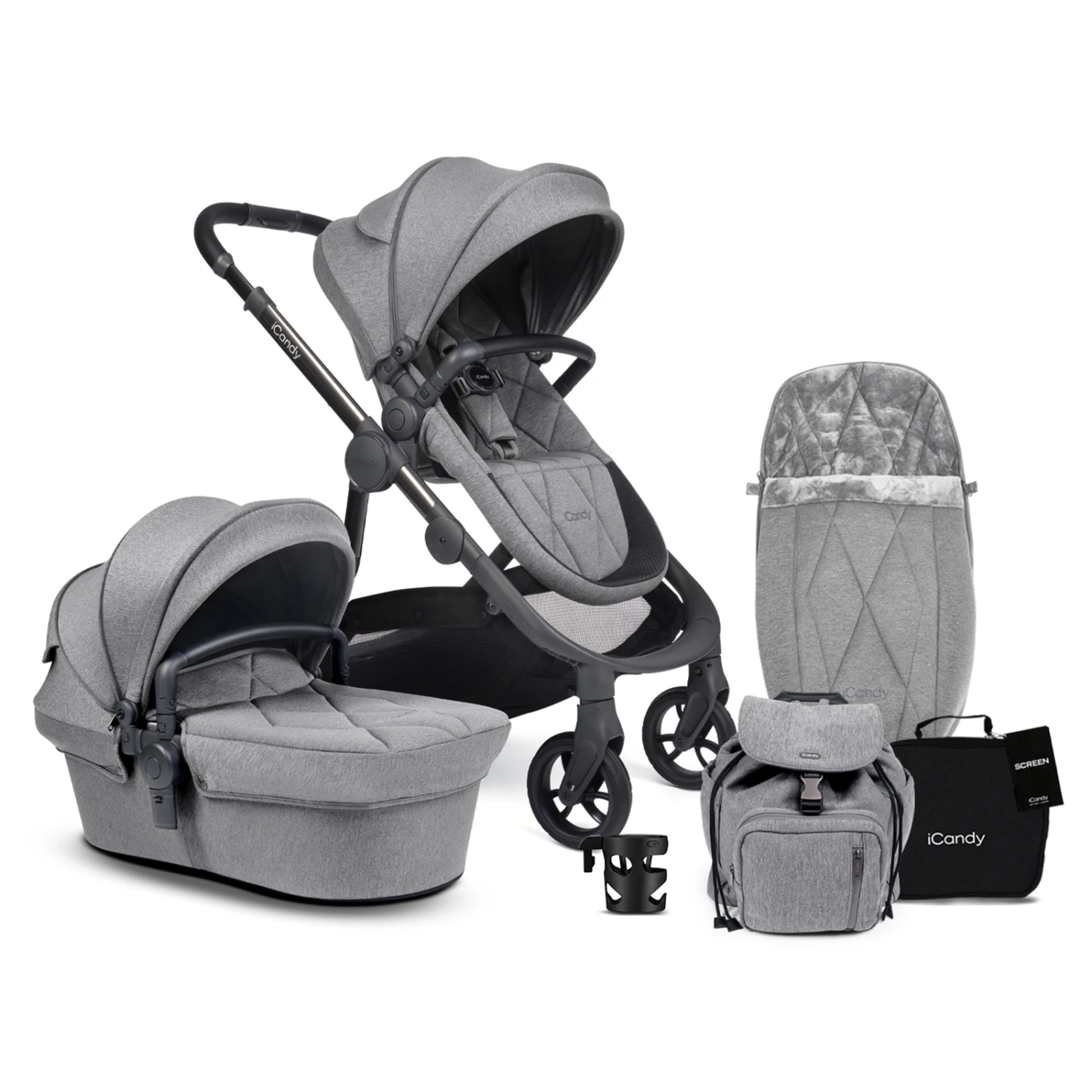 iCandy Orange 3 Carrycot & Pushchair Complete Bundle – Light Slate Marl Phantom