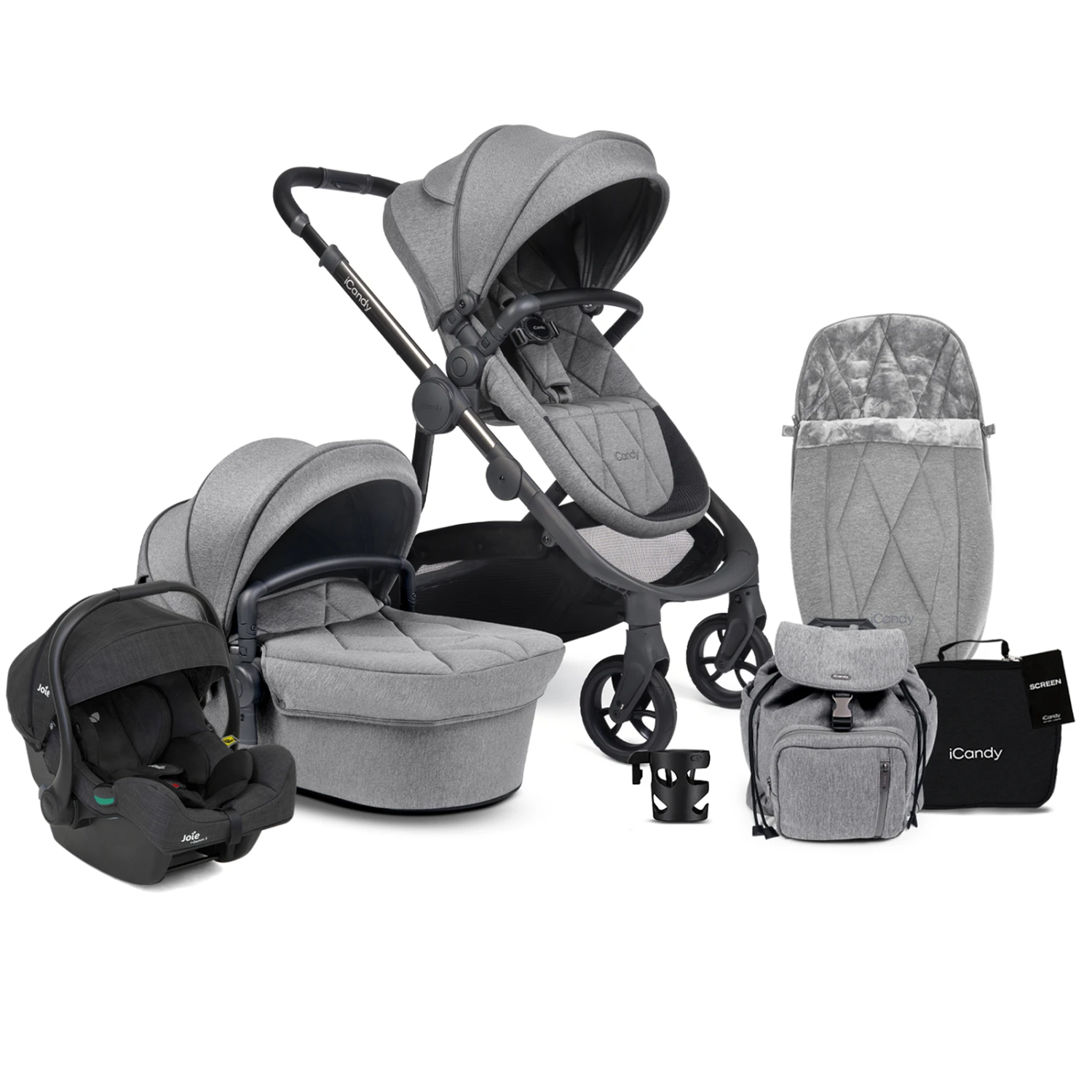 iCandy Orange 3 Complete 13 Piece Travel System Bundle with i-Gemm 3 Car Seat – Light Slate Marl Phantom