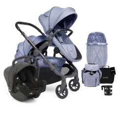 iCandy Orange 3 Double with i-Snug 2 Car Seat Complete 20 Piece Travel System Bundle – Mist Blue Marl Phantom