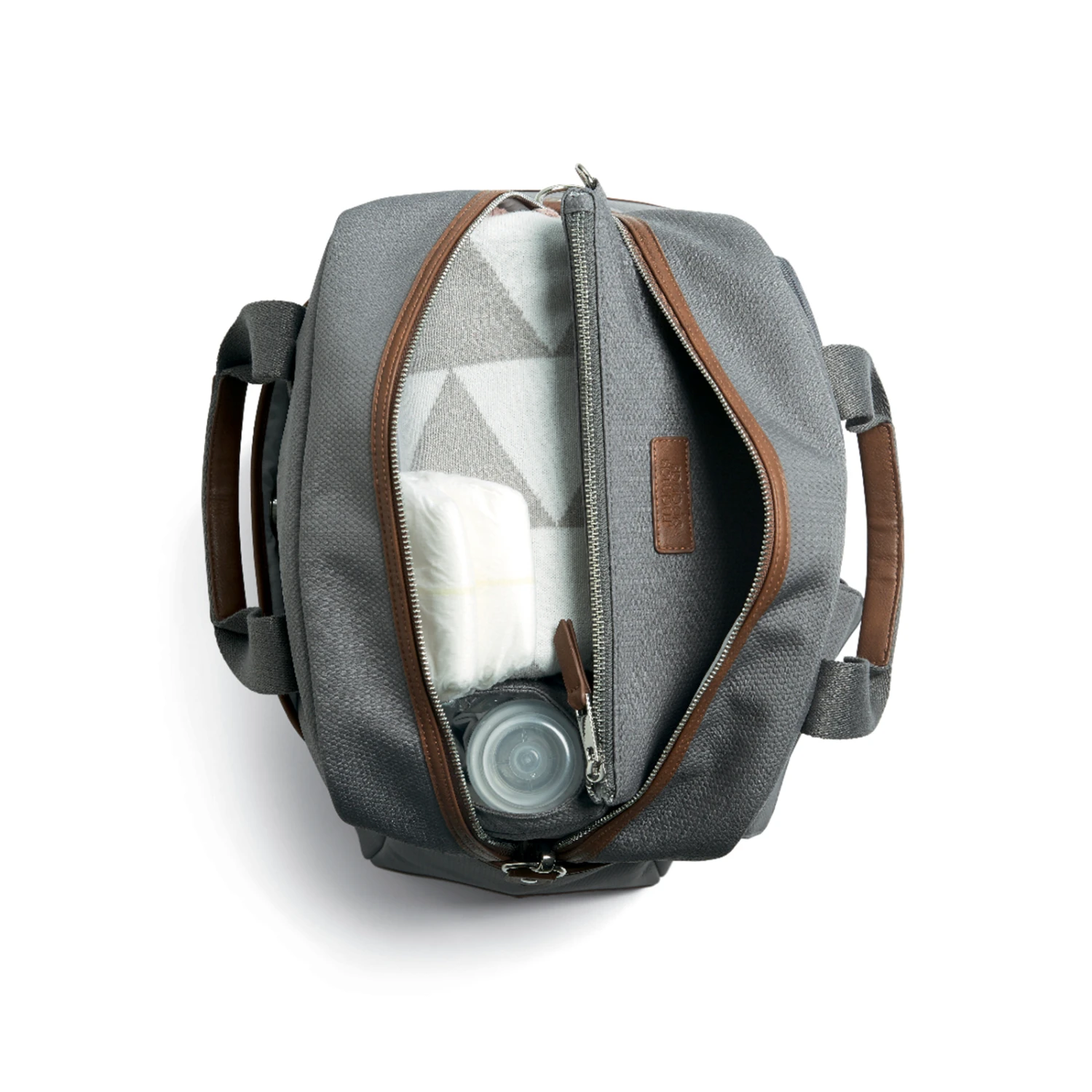Keep all your feeding and changing essentials in one place with the Mamas & Papas bowling style changing bag.