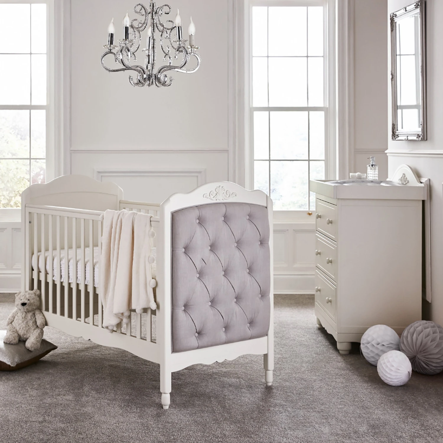 Skilfully crafted from solid New Zealand Pine, the Epernay Cot Bed from Mee-Go simply radiates style and class. It’s luxurious tufted end panels and carved wooden features look exquisite and also adds a degree of softness to the room it resides in.