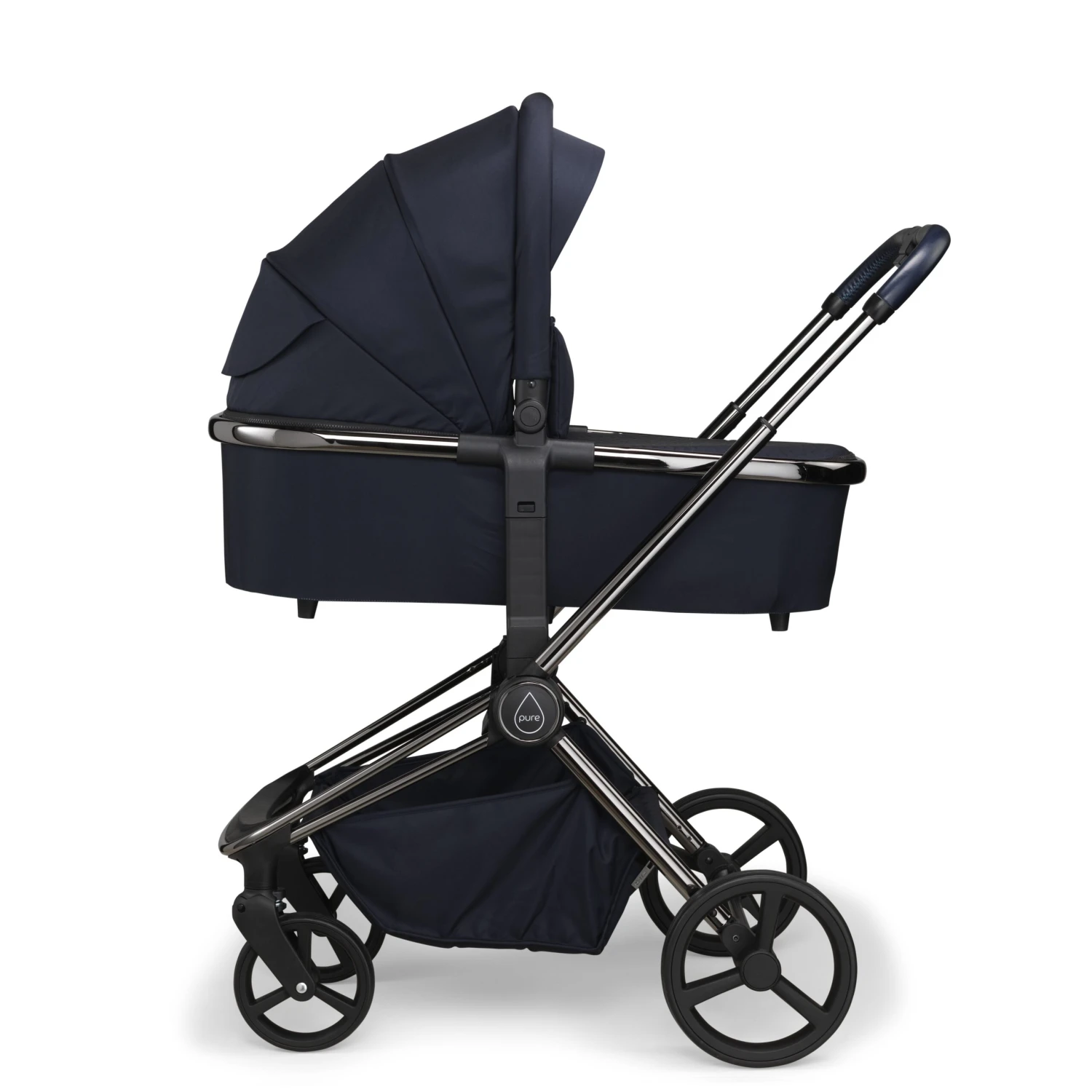 In addition, the Pure stroller comes fully equipped with all those must have essentials including a matching designer mama bag, footmuff, raincover, mosquito net as well as a pair of multi car seat adapters, that allows you transform this luxury pushchair and carrycot into a stylist, must have travel system.