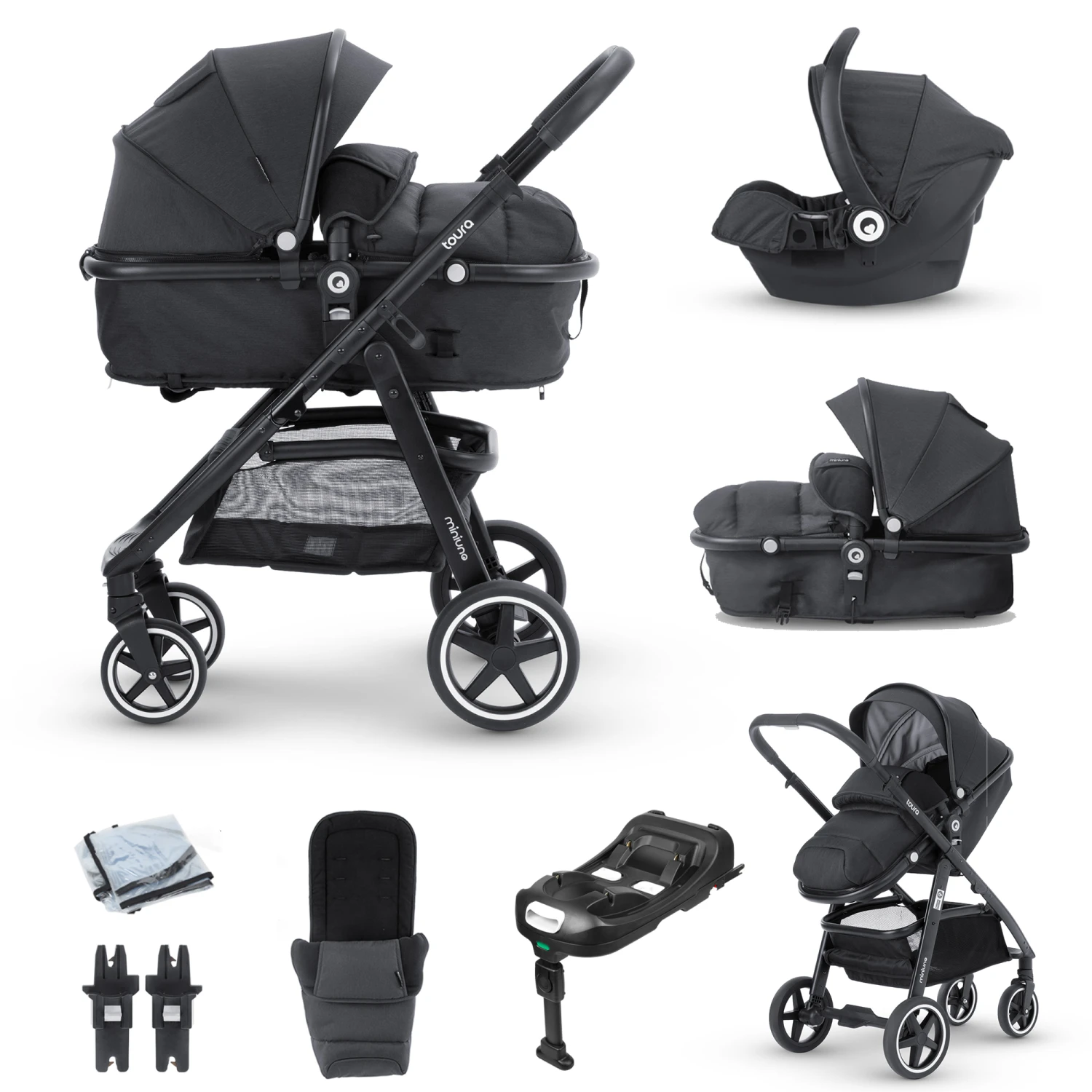 Toura is a stylish, modern pram, pushchair and travel system that makes life with your growing baby simple. The newborn carrycot features a padded liner and can be used up to around 9kg. The stroller seat has both a cosy footmuff and a padded summer liner and can be used forward and parent facing up to around 15kg. The package also includes a SecureFix Group 0+ car seat/infant carrier.