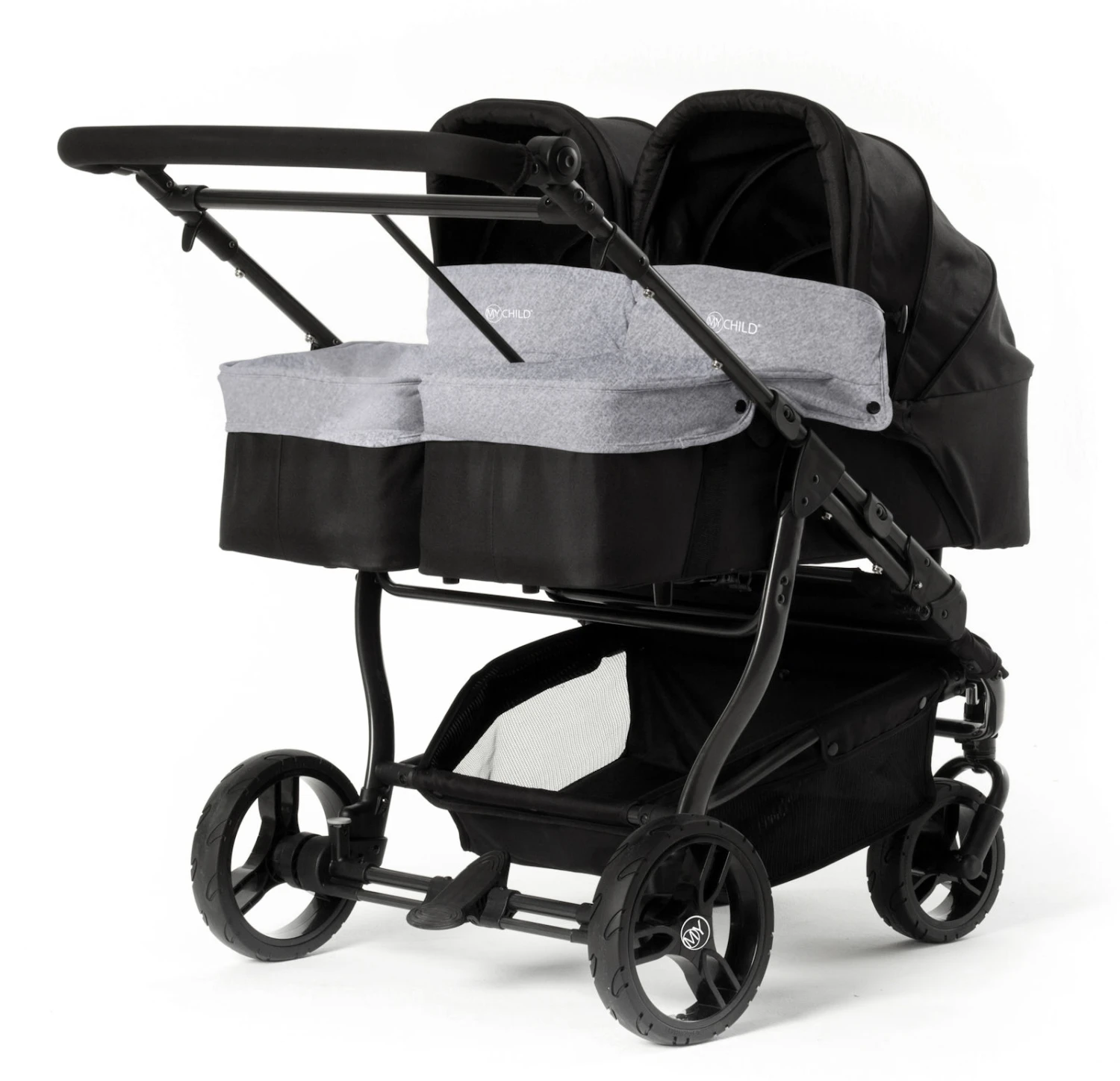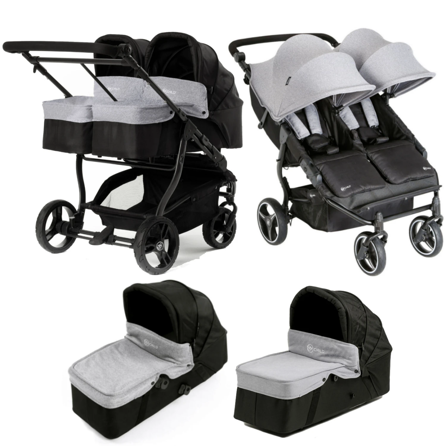 My Child Easy Twin Double Stroller & x2 Carrycot – Grey