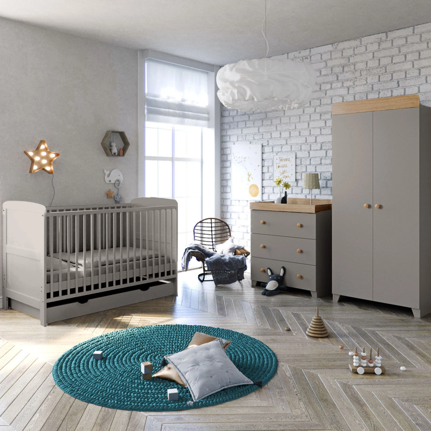 Puggle Henbury Bed 5 Piece Nursery Furniture Set With Drawer – Grey & Oak