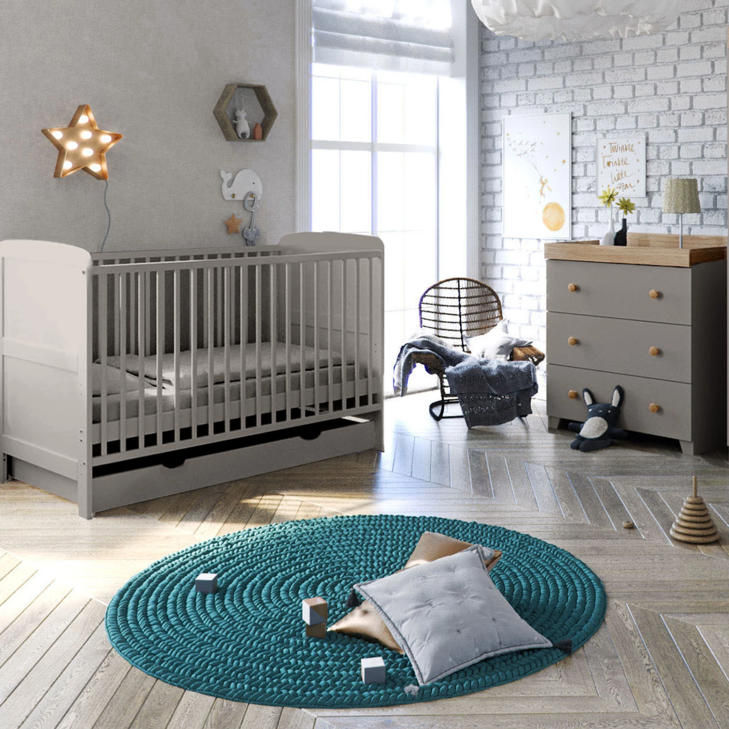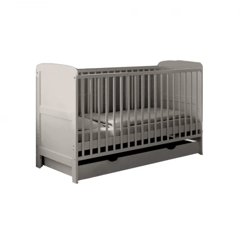 This stunning Cot Bed features a 3 position height-adjustable mattress base that can be repositioned to match your baby’s growth. The cot bed comes with added teething rails to protect your little ones gums, and protecting your furniture from little teeth.