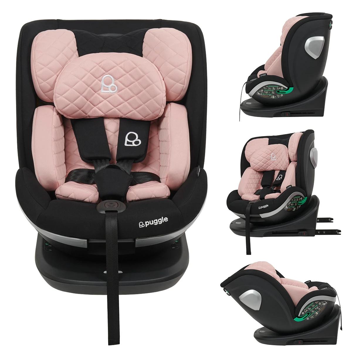 Puggle i-Size Safe Max Luxe Group 0+123 360° Rotate Car Seat (2 Pack) – Blush Pink