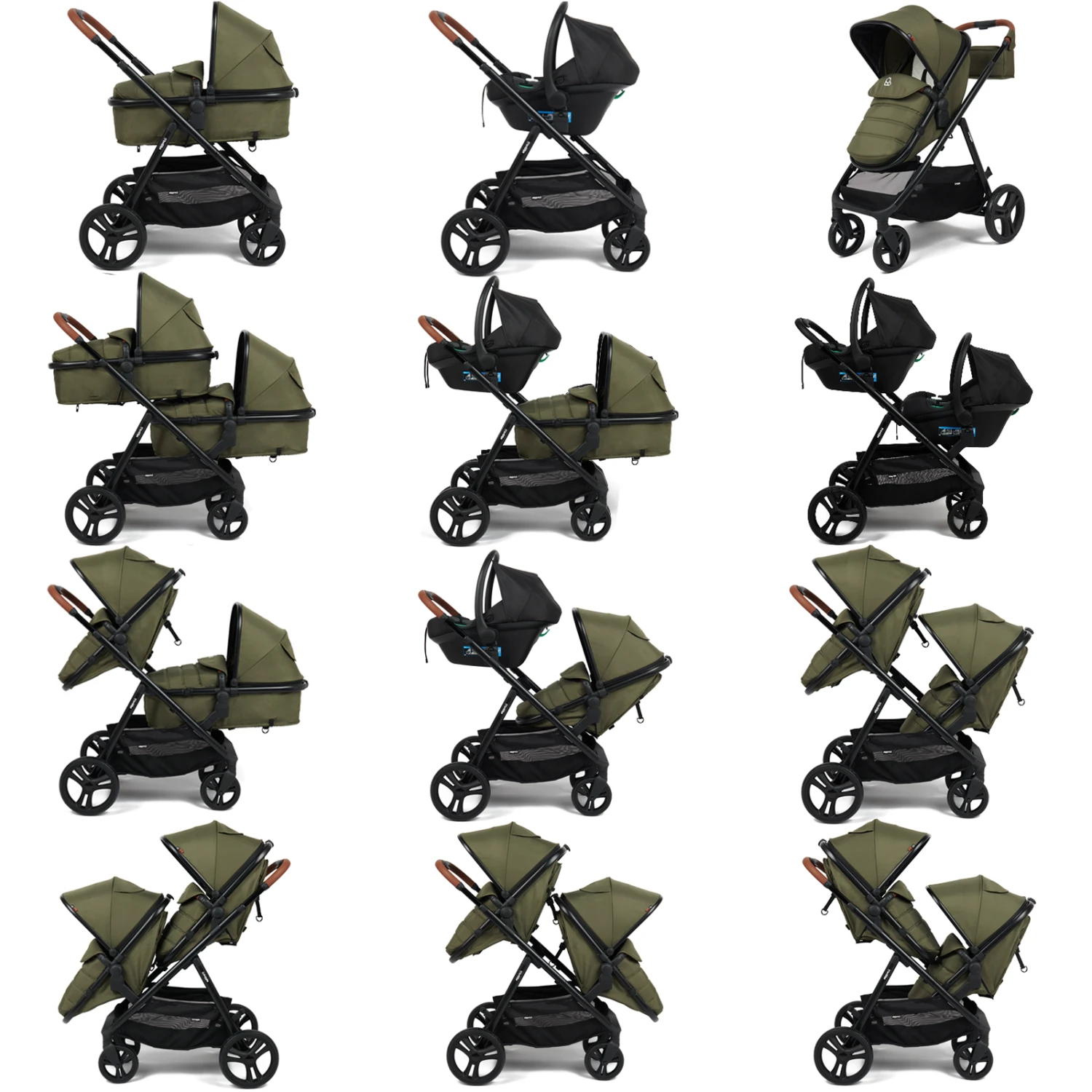 Puggle Memphis 2-in-1 Duo i-Size Double Twin Travel System with ISOFIX Base – Forest Green