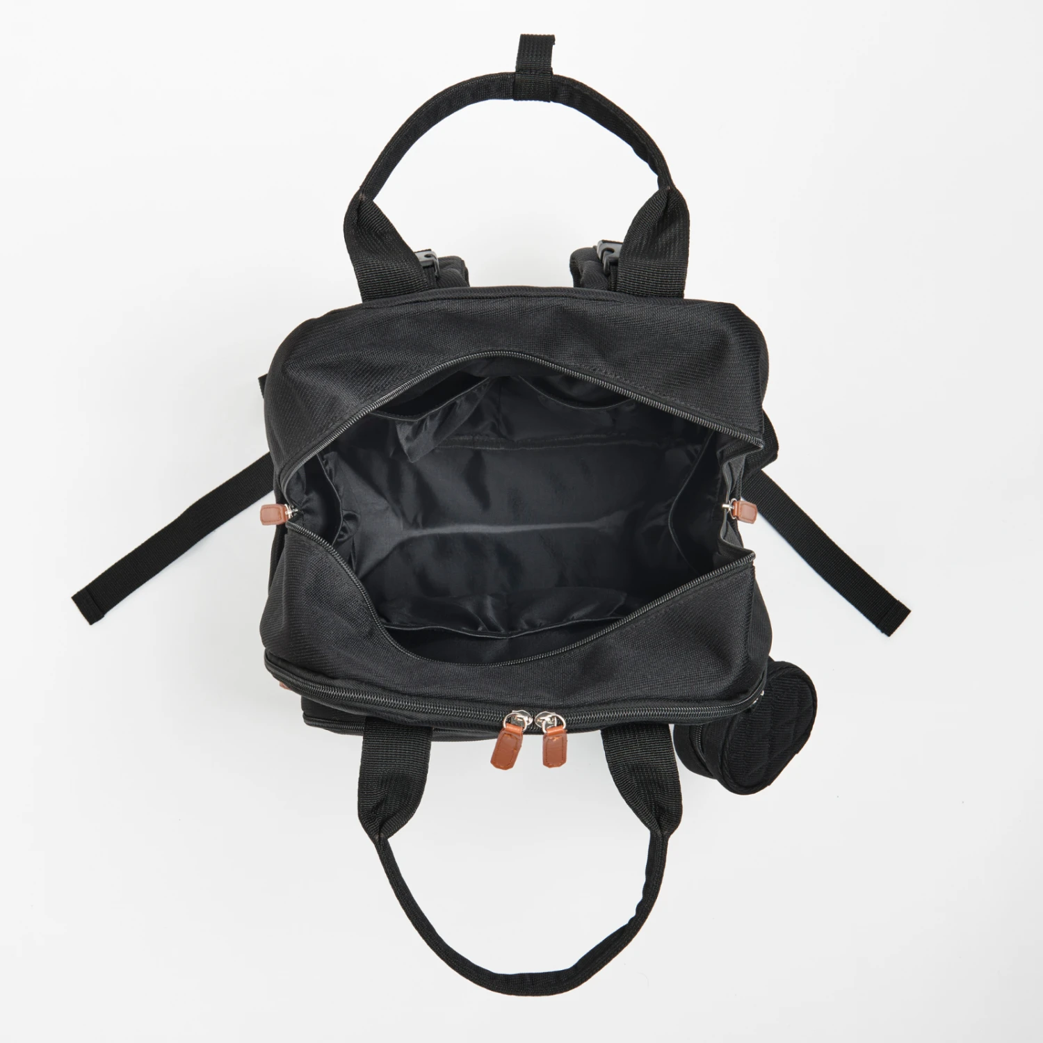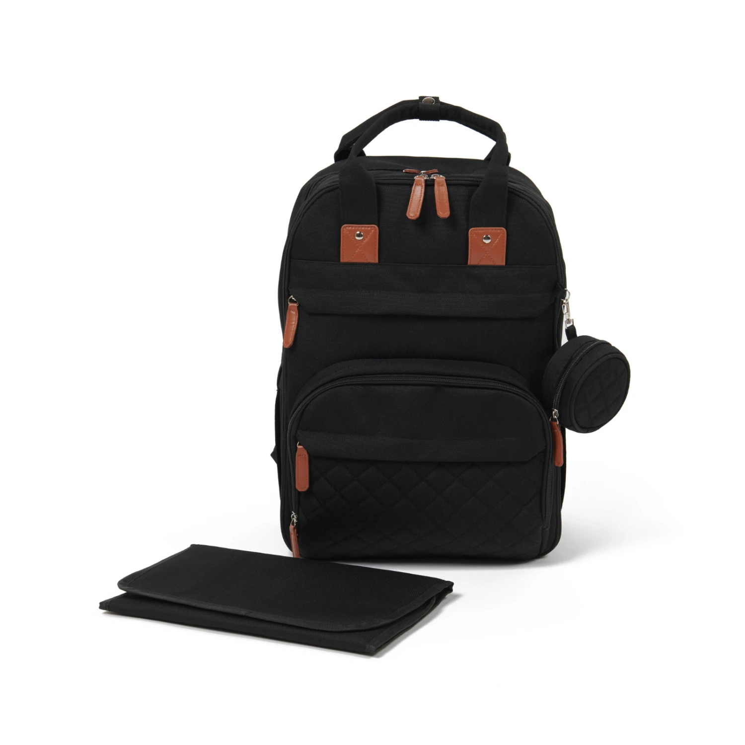 This nappy bag includes 2 main compartments, 3 insulated pockets (fit for all major baby bottles), a wipe pocket, and a dedicated multi-function changing pad pocket, that holds tablets and laptops (up to 15.6”). The multiple pockets with easy-glide zipper makes this nappy changing backpack easily accessible with just one hand.