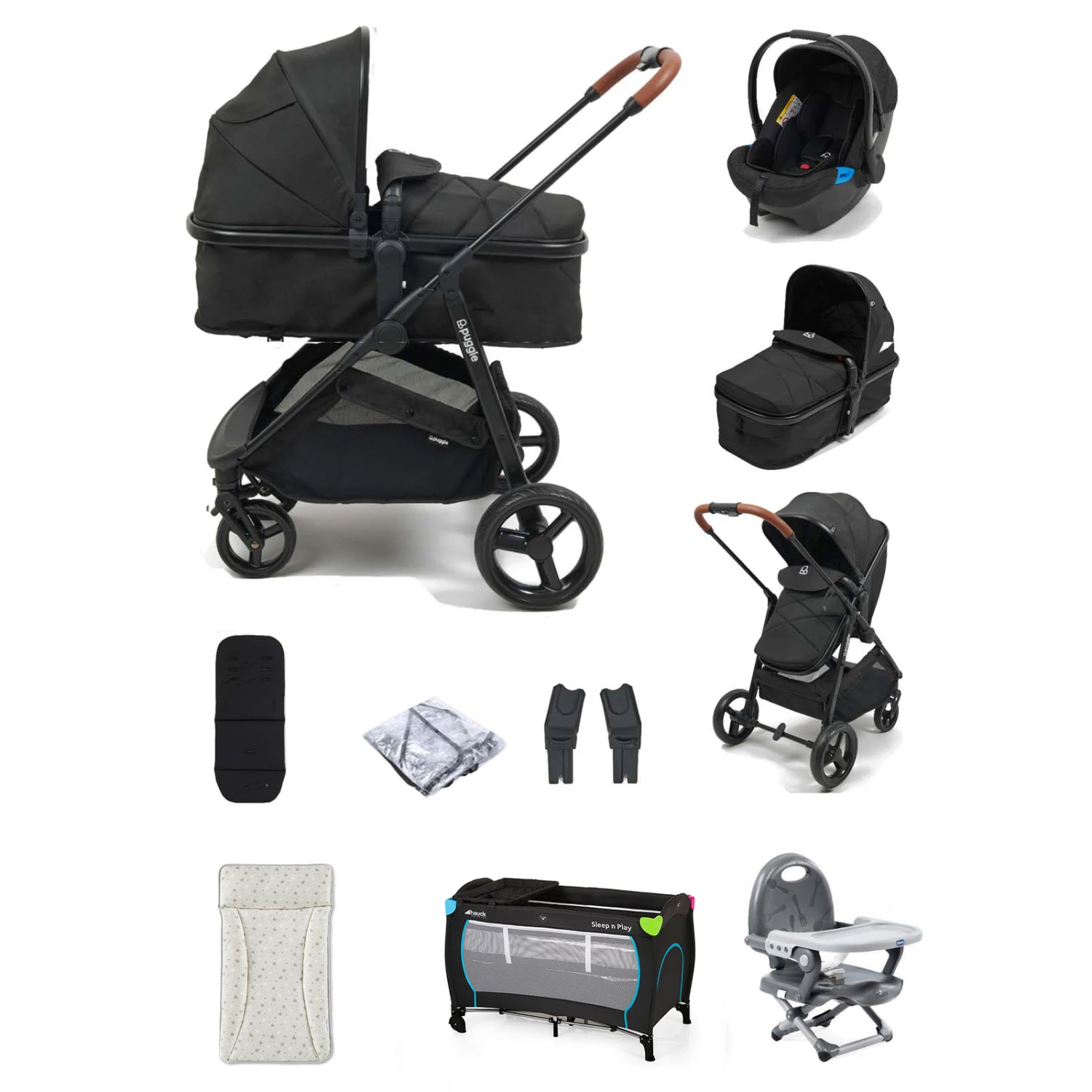 Puggle Monaco XT 2in1 Pram Pushchair Everything You Need Travel System Bundle – Black