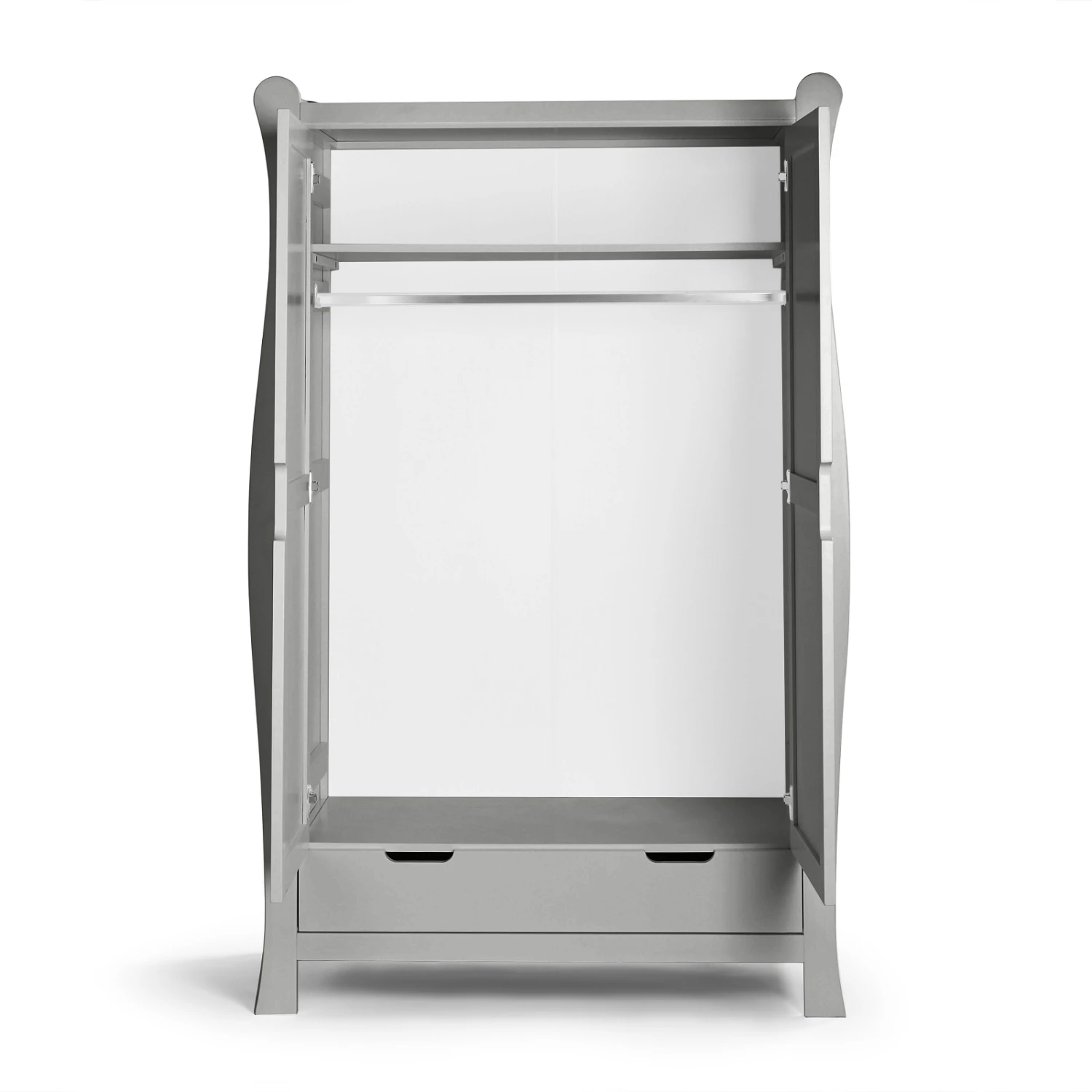 With its sleek sleigh design and beautiful panelled doors, it’s the perfect addition to any nursery.
