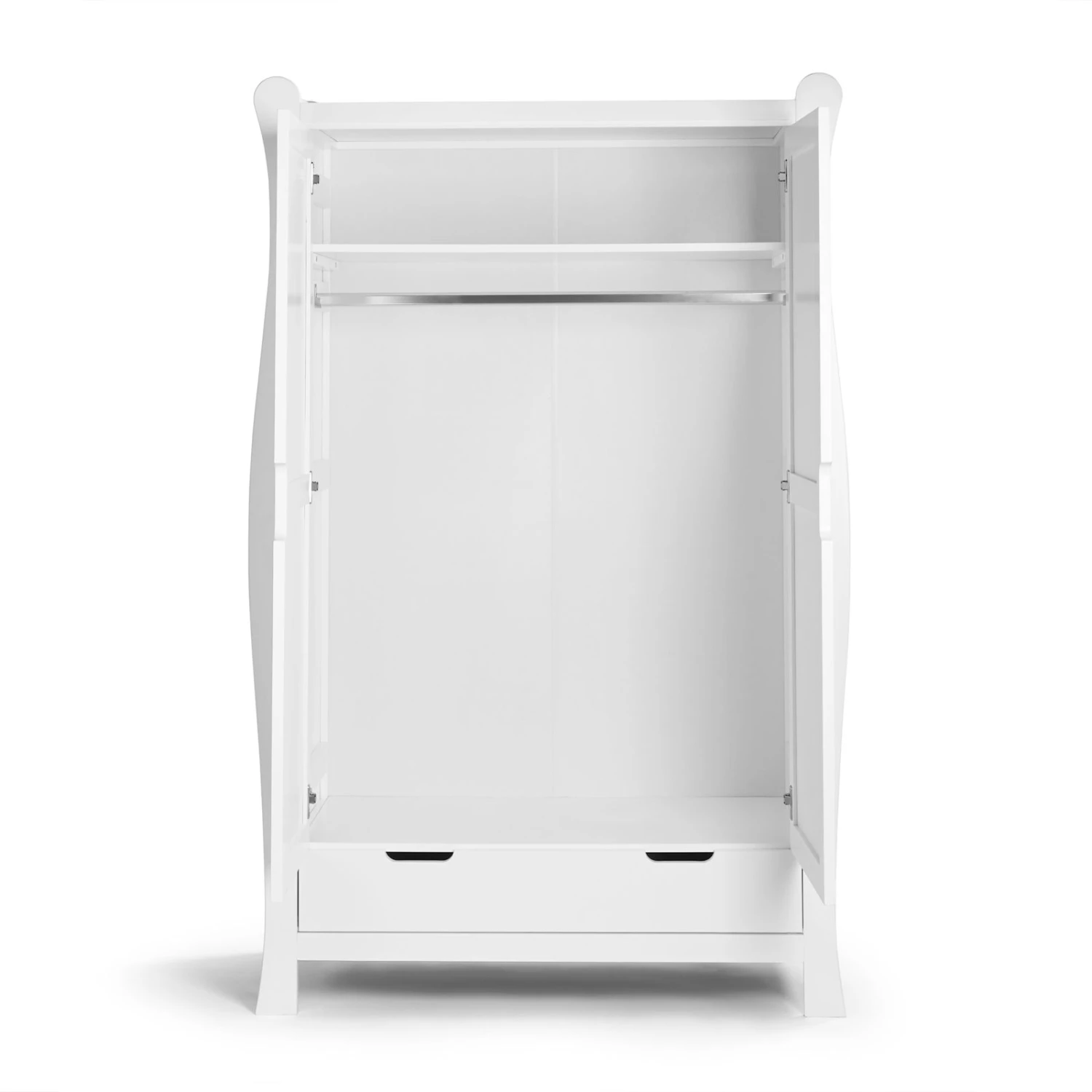 With its sleek sleigh design and beautiful panelled doors, it’s the perfect addition to any nursery.